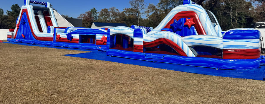 Make your event the talk of the town with the 20x100 Red/White/Blue Climb Radical Obstacle Cours. This massive, competitive inflatable brings non-stop action. Two racers climb a marble rock wall and drop down a 13+ foot slide. At 100 feet long and 19 feet tall, it’s a show-stopping centerpiece for fairs, camps, and community events. πͺ