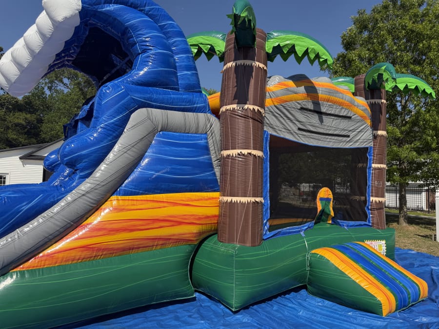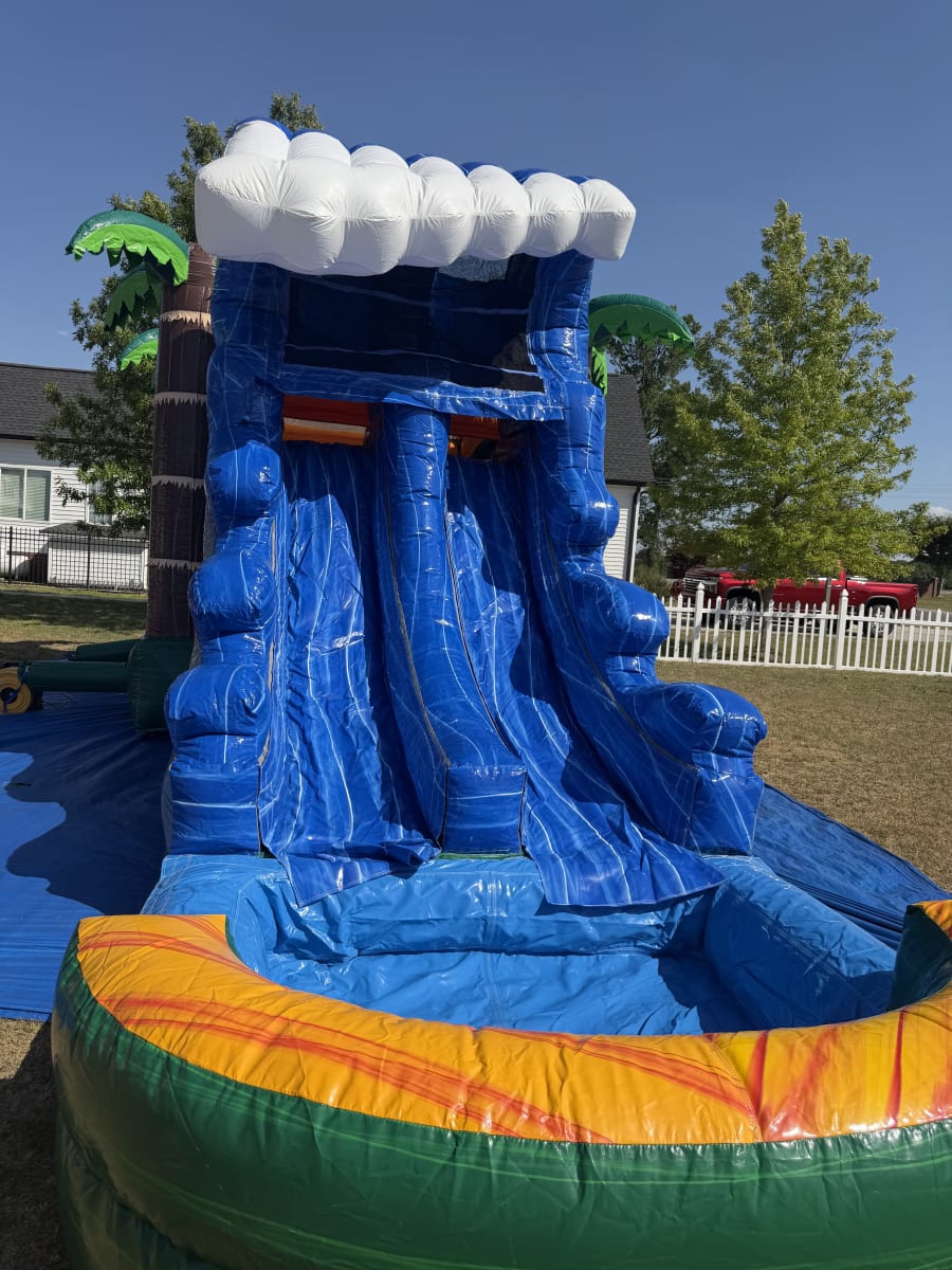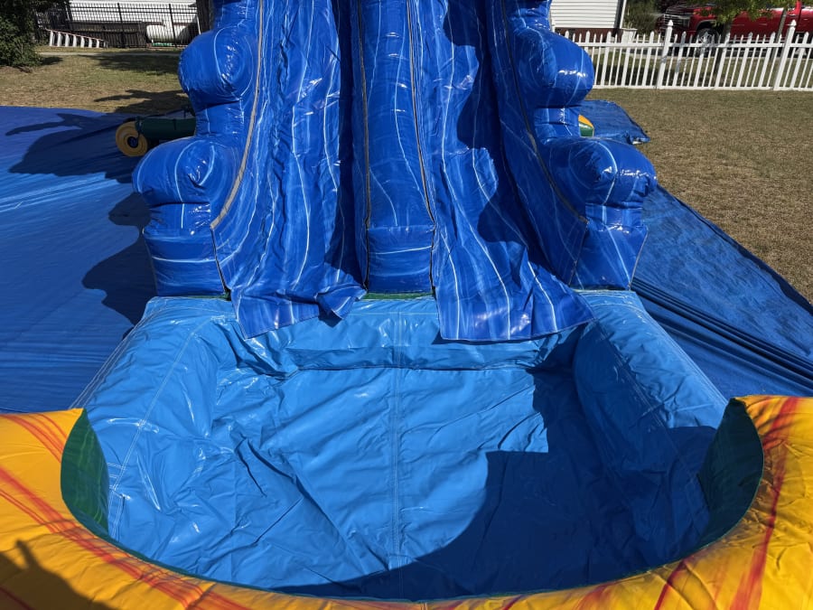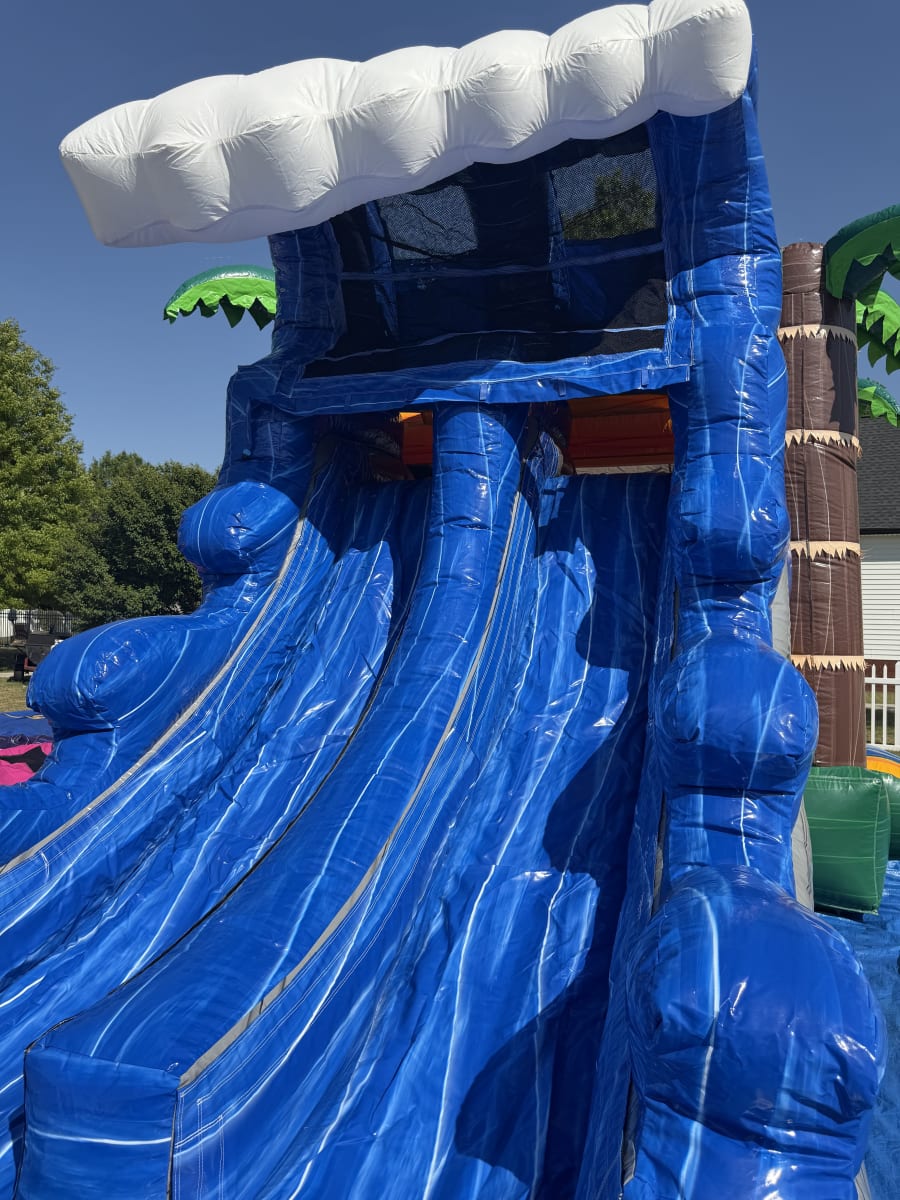 Water slide 36Ft Tropical Wave in Snow Hill NC & surrounding areas delivers big thrills and cool relief. This 36 ft dual-lane combo features a pool at the base of each lane. Riders race side-by-side. Splashdowns are instant and refreshing. Perfect for summer parties, church events, school functions, and backyard fun. ☀️💦